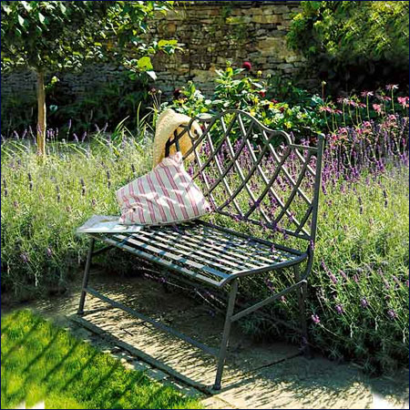 Những chiếc ghế dài đặt dưới bóng cây hay cuối lối đi mang lại nét thanh lịch cho khu vườn.