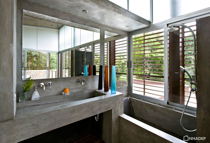 Căn nhà này được xây dựng dựa trên các phương thức truyền thống khi đã tận dụng những loại vật liệu xây dựng địa phương và chú trọng đến việc thiết kế không gian xanh bên ngoài. Sự kết hợp giữa gỗ và bê tông đã giúp tối đa hóa tính đơn giản nhưng cũng không kém phần tinh tế cho các không gian sống nơi đây.
