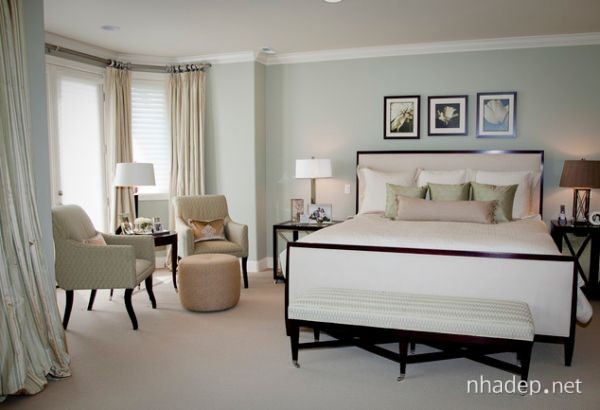 Màu sắc luôn đóng vai trò chủ chốt trong việc thiết kế phòng. Bạn hãy chọn những màu sắc nhã nhặn để giúp bạn tiếp thêm năng lượng sau những ngày mệt mỏi. Hãy điểm thêm màu sắc tối hoặc những vật dụng bằng gỗ để tạo nên nét tương phản và điều này sẽ không làm mất đi không gian thư giãn trong phòng của bạn đâu!